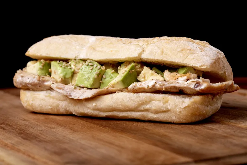 Ensalada con lechuga, tomate, palta, queso, tocino, huevo cocido, champiñones salteados, filete de pechuga de pollo a la plancha y vinagreta a elección.